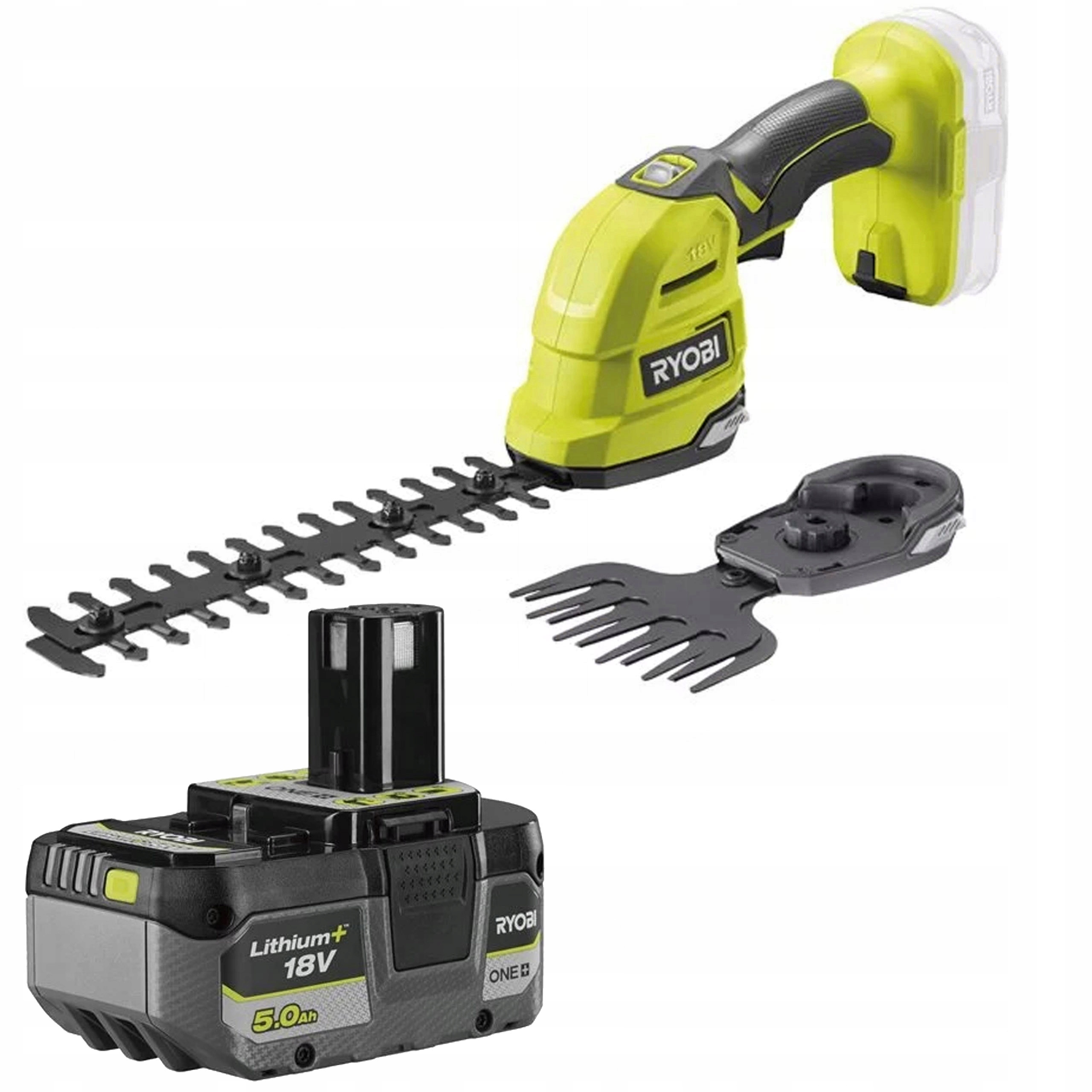 RYOBI Nożyce Akumulatorowe do Krzewów i Trawy ONE+ 18V + Akumulator 18V 5.0 Ah Lithium+