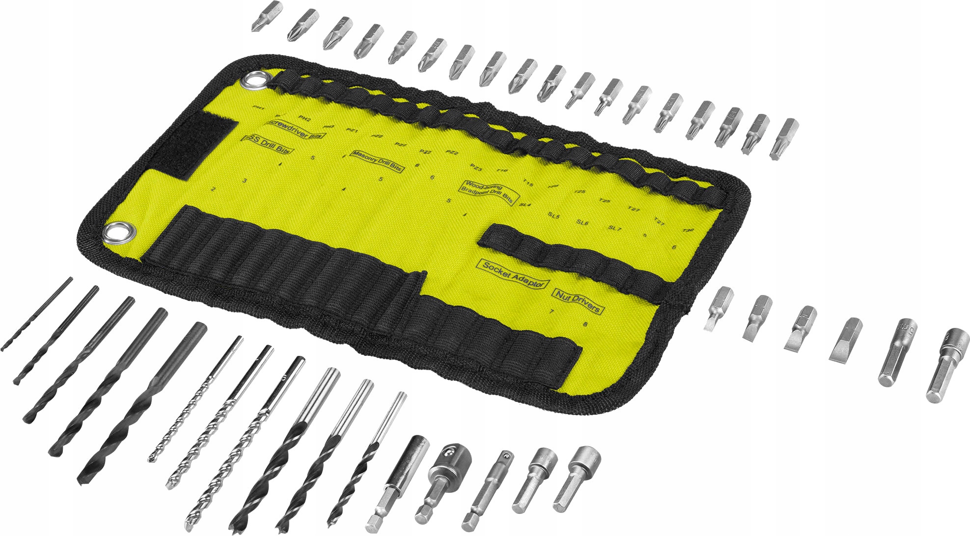 Wiertła i bity RAK40RM Ryobi to praktyczny zestaw, który przyda się w każdym warsztacie. Poszczególne elementy zostały uporządkowane w futerale. W zestawie znajdziemy: wiertła do metalu, muru, drewna, a także końcówki wkrętakowe, nasadki, uchwyty magnetyczne końcówki oraz adaptery.