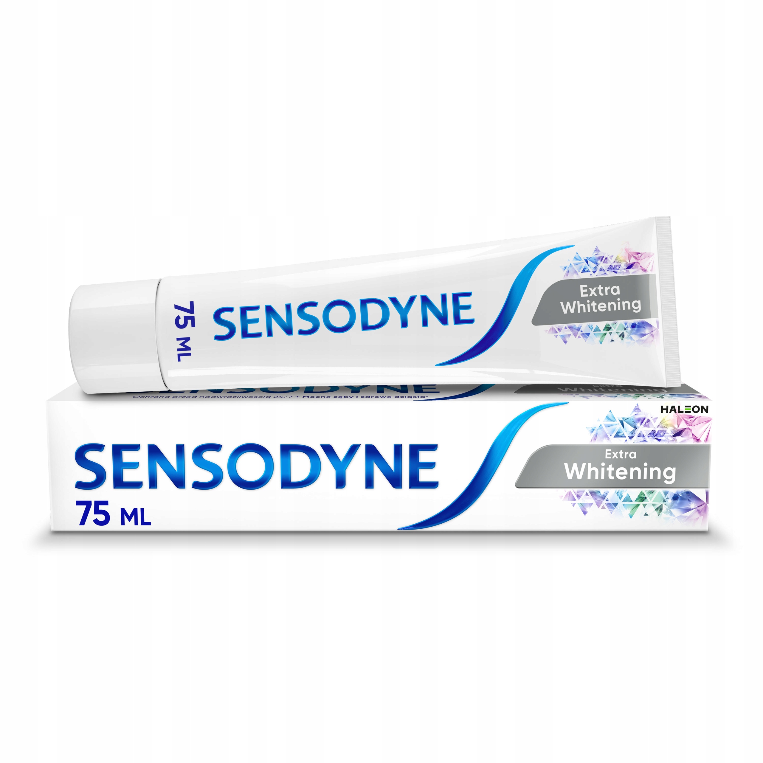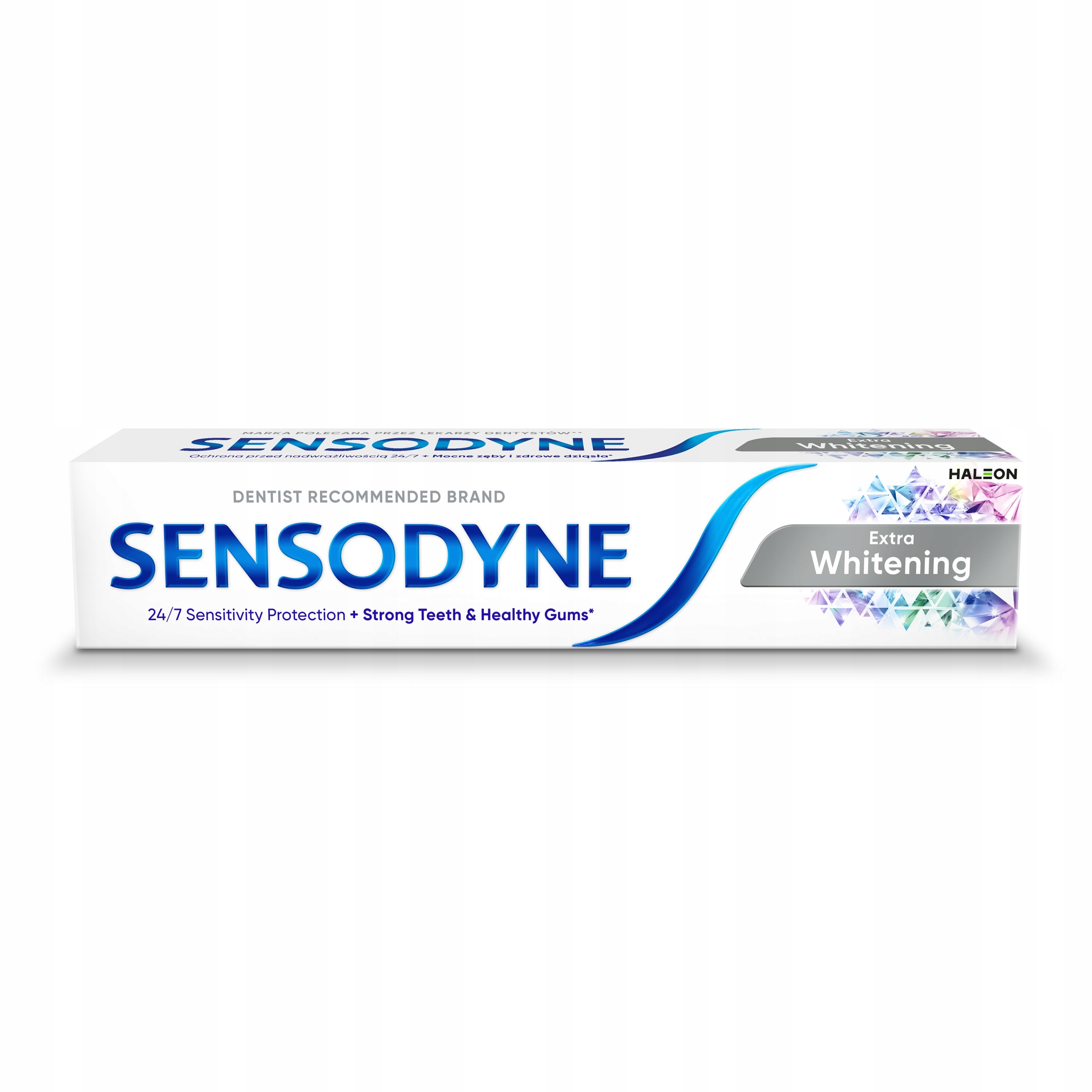 Sensodyne Extra Whitening – pasta do zębów z fluorkiem, która oferuje efekt wybielania. Wyjątkowa formuła jest odpowiednia dla osób, które borykają się z problemem wrażliwych zębów, ponieważ starannie dobrane składniki zapewniają długotrwałą ulgę od nadwrażliwości i związanego z nią dyskomfortu.