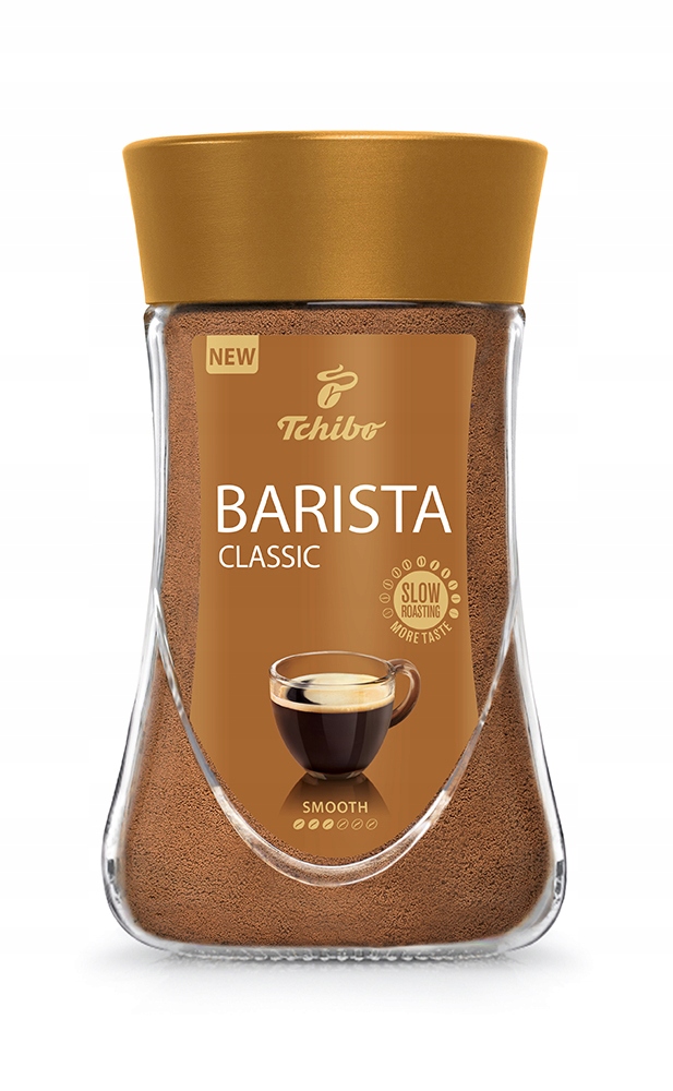 Tchibo Barista Classic to delikatna kawa wypalana tradycyjną metodą bębnową – teraz dostępna jest w wygodnej wersji instant. Wybierz ją, jeśli zależy Ci na szybkim przygotowaniu napoju! Ta elegancka mieszanka najlepszych ziaren zapewni łagodne pobudzenie. Jej harmonijny smak z nutą słodyczy docenią fani klasycznych kaw. Tchibo Barista Classic to świetny sposób na dawkę energii każdego dnia!