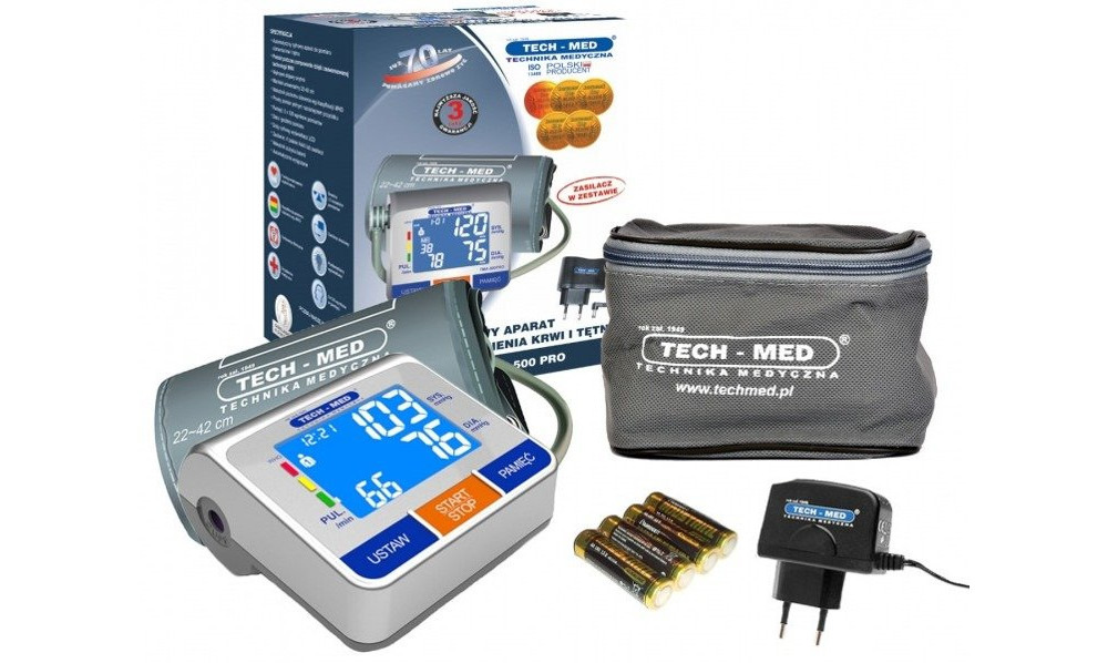 Tech-Med POLSKI Ciśnieniomierz elektroniczny TMA-500 PRO + ZASILACZ + ETUI