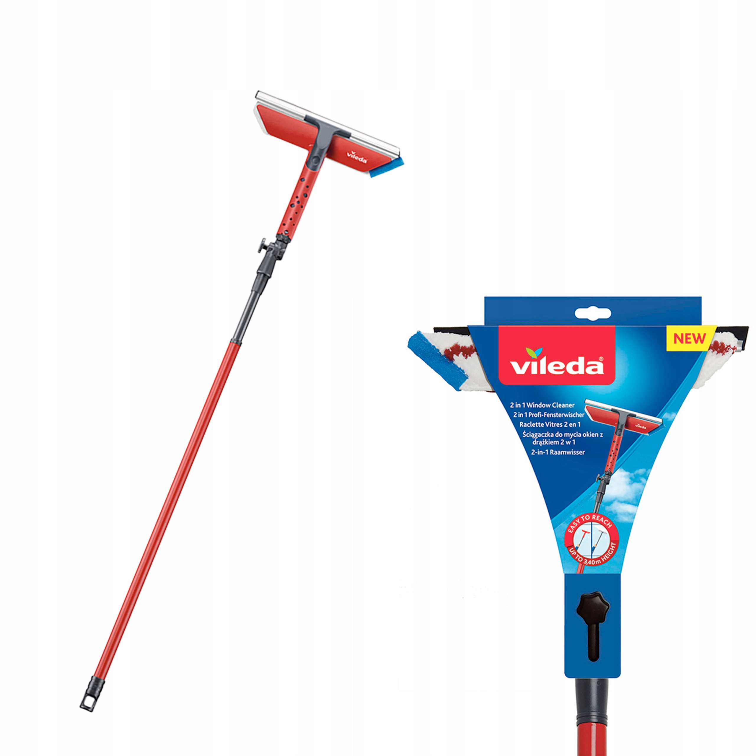 Ściągaczka do okien z drążkiem teleskopowym Vileda 128782 zapewnia wysoką skuteczność zmywania. Wyposażono ją w dwa elementy czyszczące: gumową ściągaczkę oraz myjkę z nakładką z mikrowłókien. Regulowany w zakresie 106-160 cm drążek teleskopowy zapewnia wygodny dostęp do wysokich okien, okien dachowych, świetlików itp.