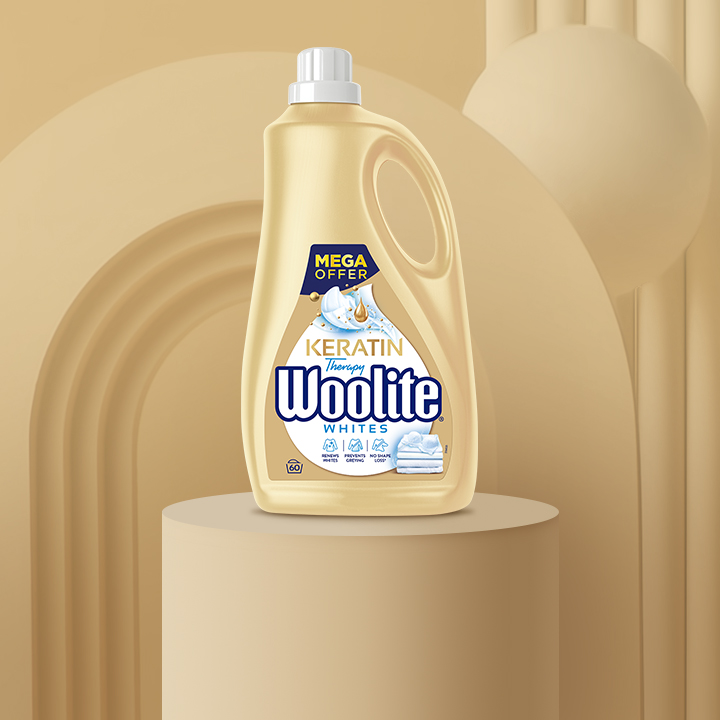 Woolite to jedyny na rynku płyn z keratyną, słynącą z wyjątkowych właściwości pielęgnacyjnych włosów. Keratyna dba o nie i regeneruje, wykazując świetne właściwości ochronne, nawilżające i wygładzające. Z tego względu jest chętnie wykorzystywana przez największych światowych producentów kosmetyków do pielęgnacji włosów.