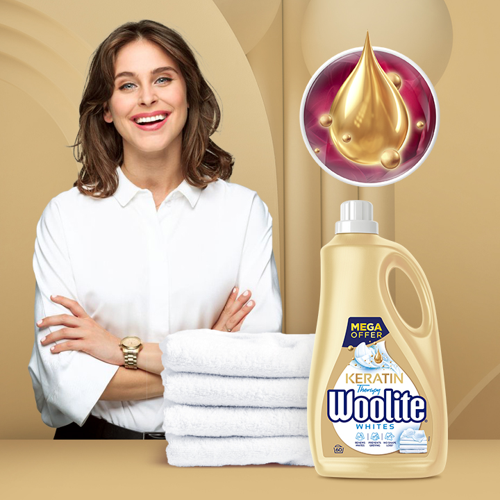 Podczas każdego prania ubrania ulegają niszczącej sile tarcia, co prowadzi do utraty kształtu, koloru i mechacenia. Aby temu zapobiec, Woolite stworzył serię płynów do prania Keratin Therapy. Aktywna Formuła z dodatkiem keratyny, znanej dotychczas głównie z profesjonalnych kosmetyków do włosów, skutecznie chroni i wygładza włókna. Wszystko po to by dłużej cieszyć się ulubionymi ubraniami!