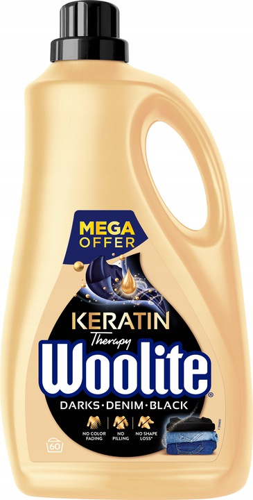 Unikalna formuła płynu Woolite zapewnia ochronę przed blaknięciem kolorów tkanin, zachowując ich nowy wygląd na dłużej. Keratyna zawarta w płynie do prania Woolite wygładza włókna i nadaje im blask.