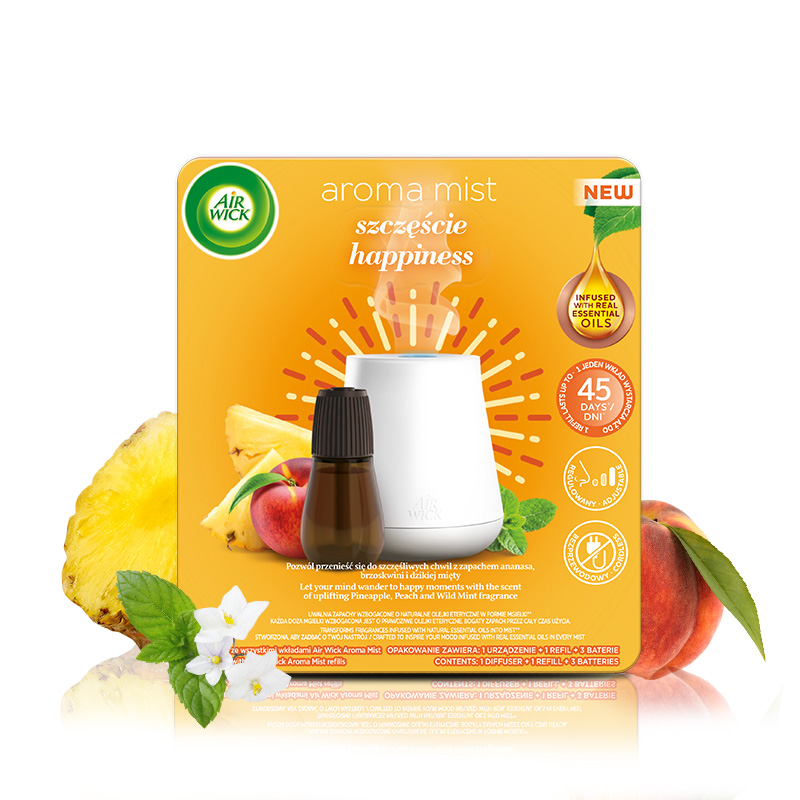Air Wick Aromatyczna Mgiełka Dyfuzor Szczęście – zapach ananasa, brzoskwini i dzikiej mięty
