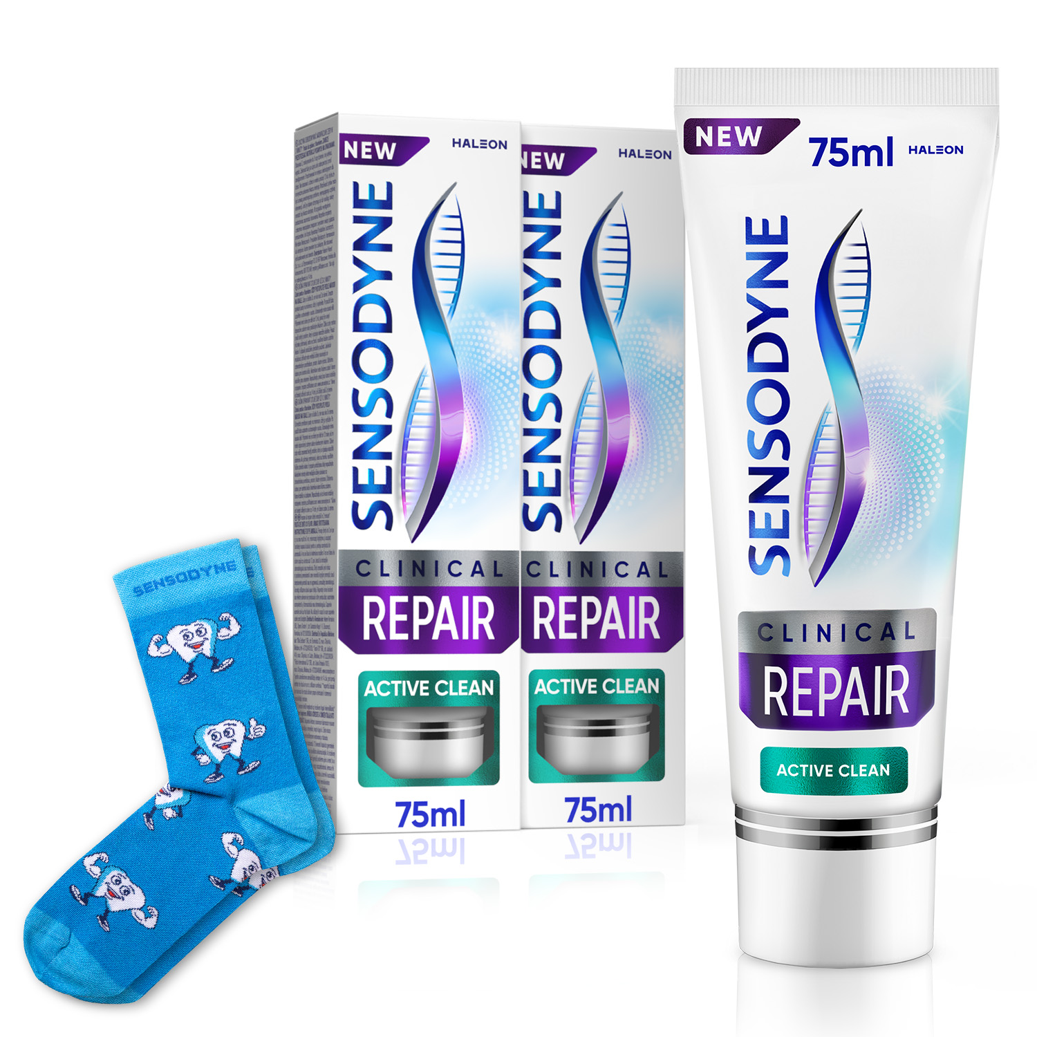 Zestaw Sensodyne Clinical Repair Active Clean 75 ml x2 + Skarpetki gratis