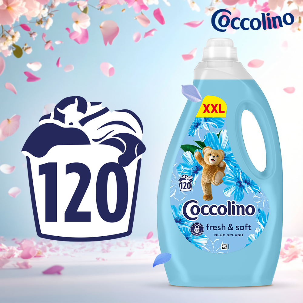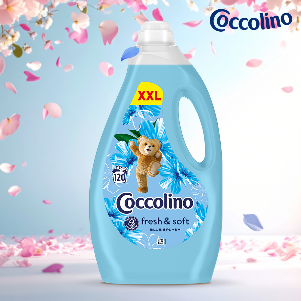 świeżość, która otula Twoje ubrania i trwa aż do 100 dni! Zamień zwyczajne, codzienne pranie w pachnący świeżością, wyjątkowy rytuał z Coccolino Fresh&Soft Blue Splash – skoncentrowanym płynem do płukania tkanin, który zapewnia niesamowitą miękkość, ochronę włókien i długotrwałą świeżość aż do 100 dni. Dzięki innowacyjnej technologii Stay Fresh, zapach jabłka, róży i drzewa sandałowego uwalnia się stopniowo, sprawiając, że Twoje ubrania pachną świeżością jeszcze długo po wyjęciu z szafy. Wystarczy zaledwie pół nakrętki, by cieszyć się miękkością i zapachem, który poprawia nastrój każdego dnia i sprawia, że staje się on milszy. Zadbaj o swoje ubrania i zmysły – wybierz Coccolino Fresh&Soft Blue Splash i poczuj różnicę już od pierwszego prania! Płyn do płukania tkanin Fresh&Soft to również niespotykana wydajność – wystarczy niewielka ilość płynu (tylko pół nakrętki), aby uzyskać niezwykle miękkie pranie, którym będziesz się cieszyć przez wiele, wiele dni. Butelka płynu o pojemności 3 l starcza na aż 120 prań pełnych świeżości oraz otulającego, przyjemnego zapachu jabłka, róży i drzewa sandałowego. Dla wzmocnienia efektu miękkości, czystości i zapachu, sprawdź również żel do prania oraz kapsułki do prania Coccolino, które na co dzień zadbają o czystość, świeżość i ochronę Twoich ulubionych ubrań.